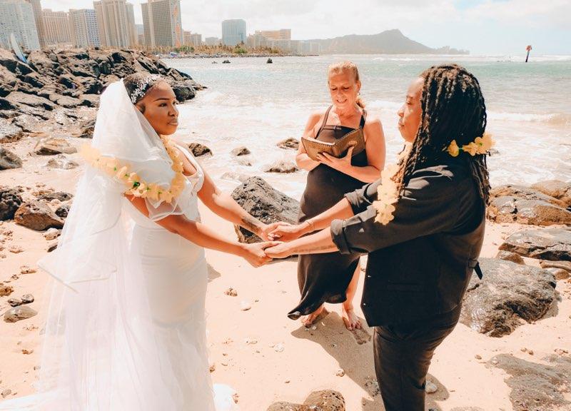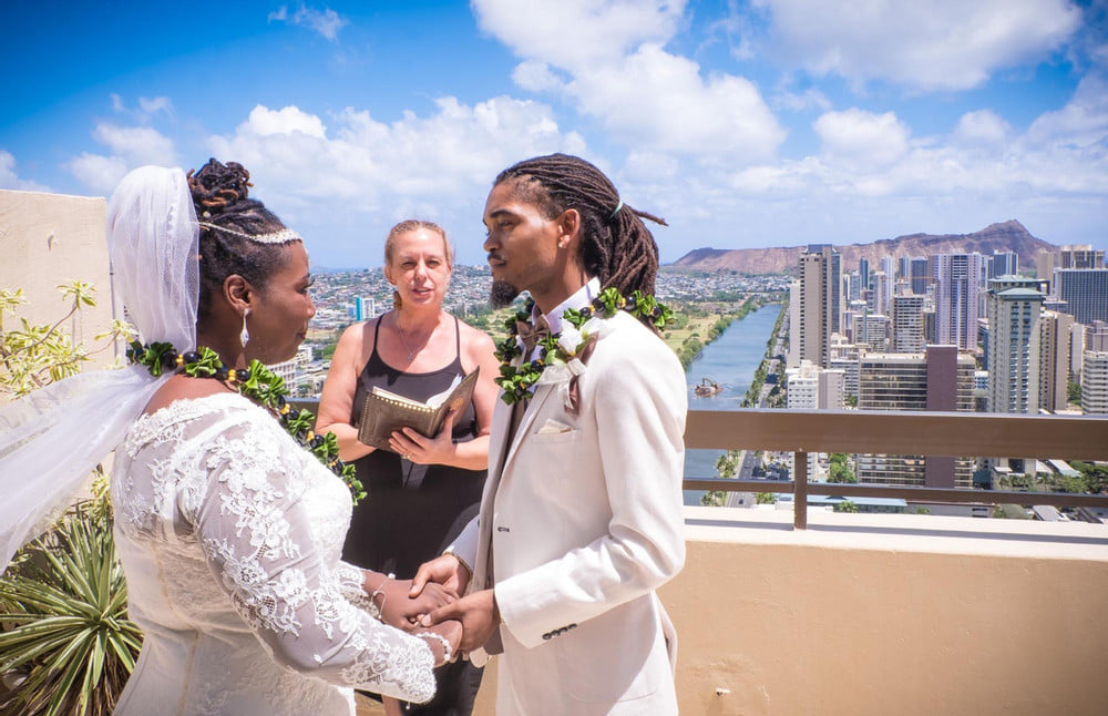 I am a Licensed Hawaii Wedding Officiant specializing in creating personalized non-religious love centric weddings, elopements, civil unions and vow renewals for traditional and same sex couples and will officiate the ceremony anywhere on the island of Oahu. I also offer a Just Make Us Legal simple courthouse style wedding at my Kapolei office. My website dedicated to wedding services is WeddingsOnOahu.com. Click the photo below to view more information about getting married on Oahu.